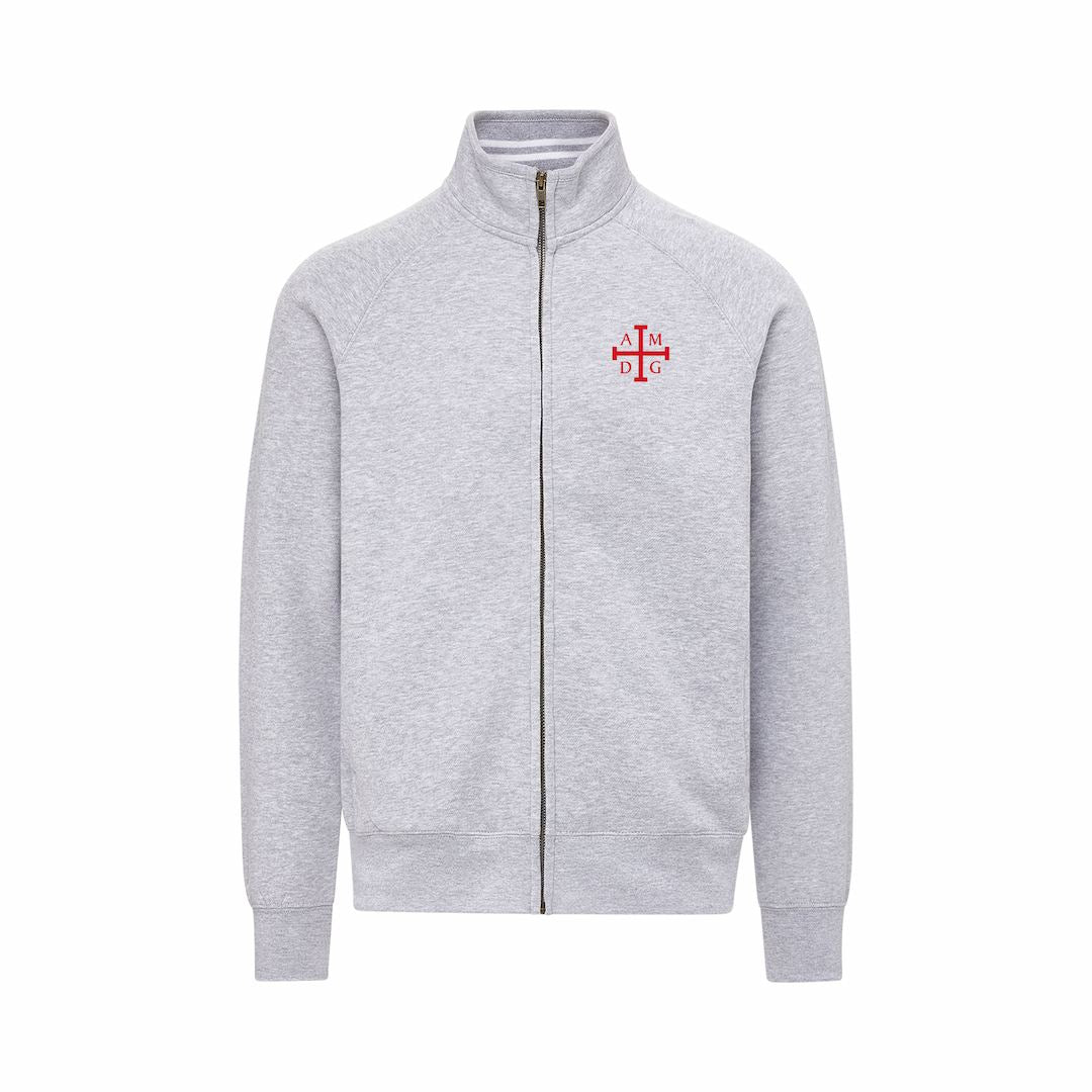 This Vintage Fleece Jacket with AMDG Embroidery is crafted from durable 65/35 cotton-polyester fleece featuring a super-soft sueded finish for premium comfort. Engineered with rib knit cuffs and waistband, it offers a secure and classic fit. The stripe rib detail on the interior collar adds a refined touch, while a specialized dyeing and finishing process ensures every piece is uniquely distinct. Designed for both style and functionality, this jacket delivers lasting quality and individuality in every wear.
